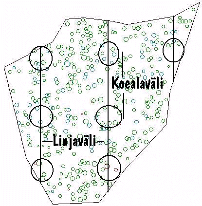 käytetään koeala-arviointeja. Inventoitavan alueen koon
