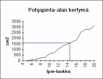 Pohjapinta-ala on puiden poikkileikkausalojen summa rinnankorkeudelta.