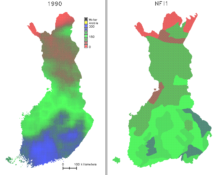 Otantamenetelmillä saadaan vain jakaumatietoa metsäalueen ominaisuuksista.